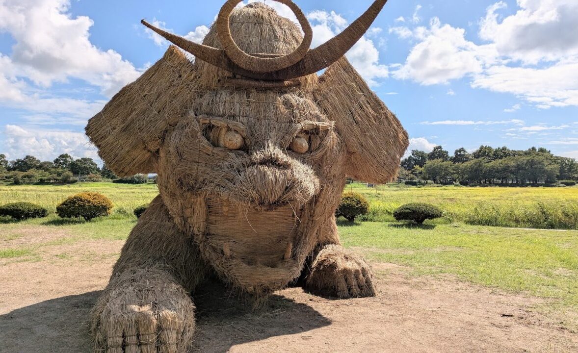 会場の「上堰潟公園」では、「わらアートまつり」も開催中。迫力ある「わらアート」も楽しめます。