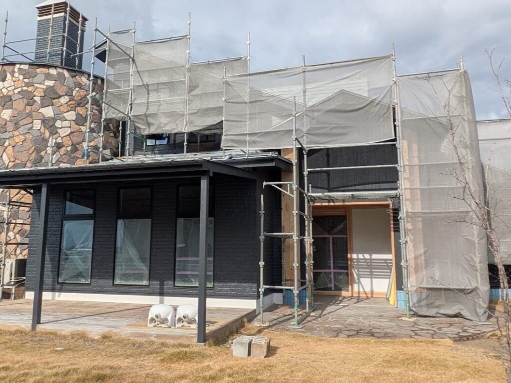 2025年11月19日に現地に伺うと、工事中でした。 青かった外壁はブラックに塗り替えられ、シックでおしゃれな印象です。