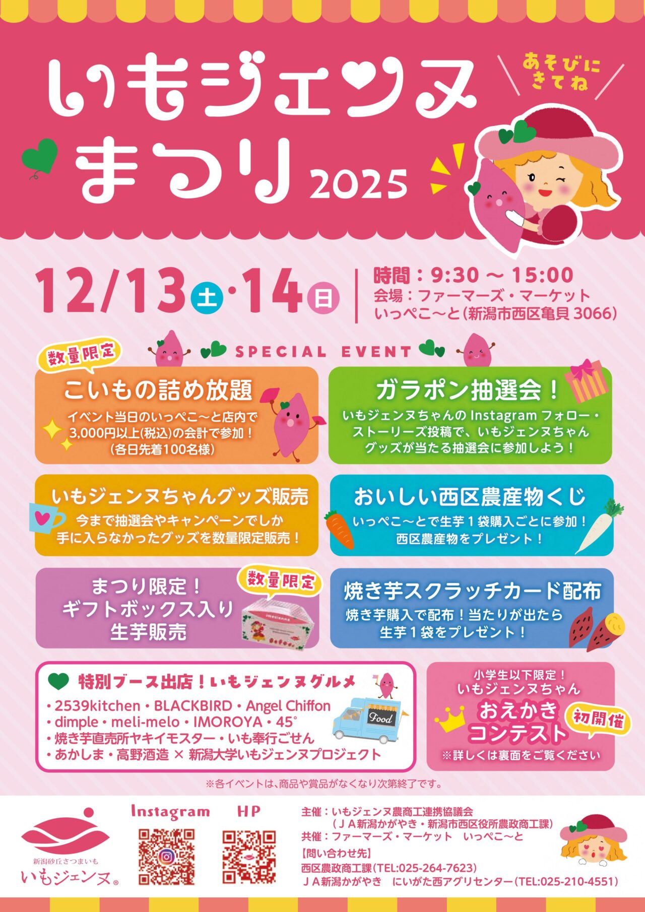 【新潟市西区】「ファーマーズ・マーケットいっぺこ~と」にて「いもジェンヌまつり2025」が開催されます。