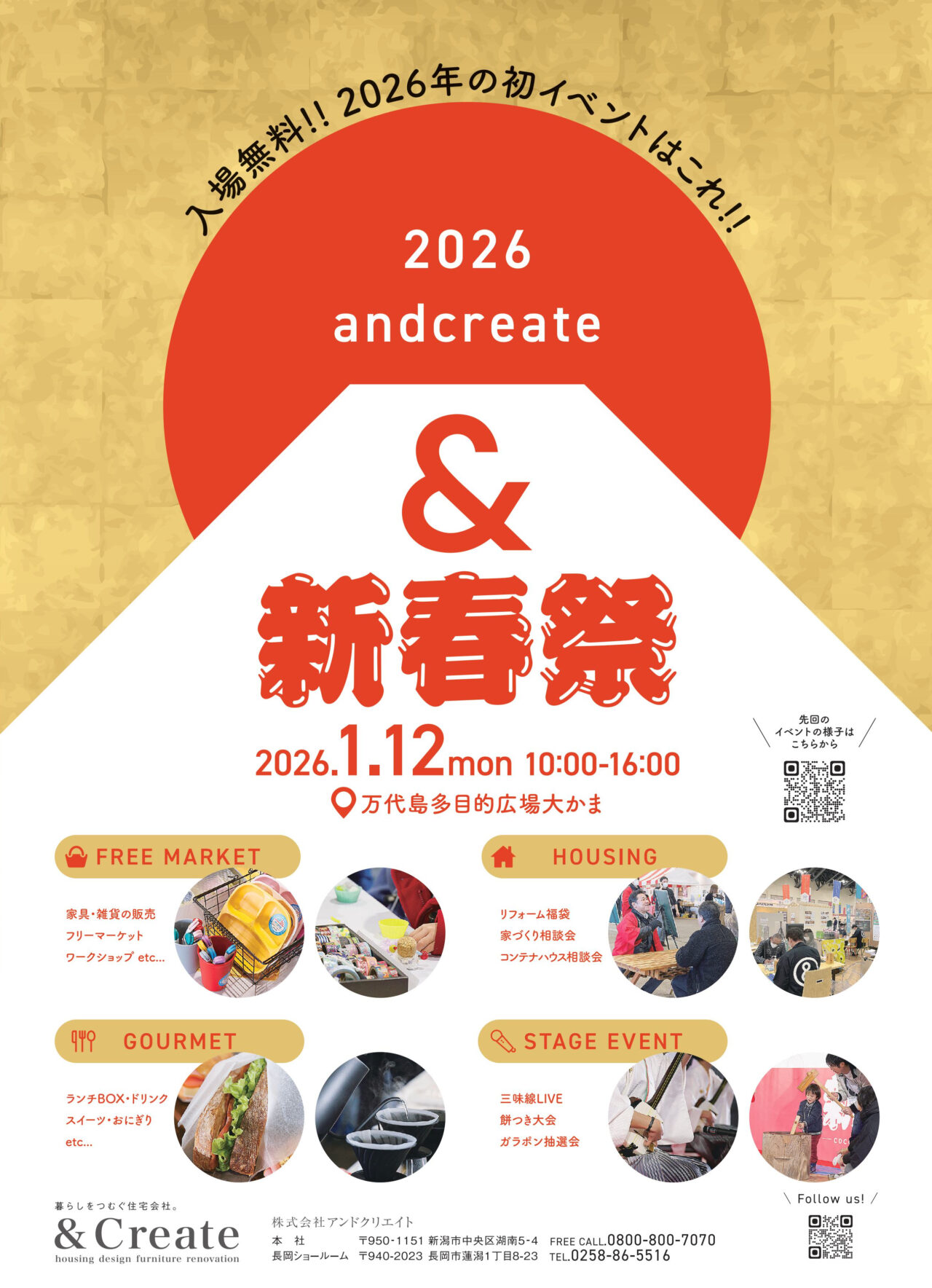 「新春祭」は、新潟市中央区に本社をもつハウスメーカー「株式会社アンドクリエイト」が開催するお正月イベントです。