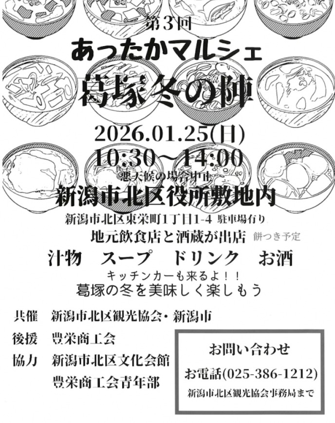 【新潟市北区】冬のグルメを満喫できる♪ 「あったかマルシェ葛塚冬の陣」が開催されます。