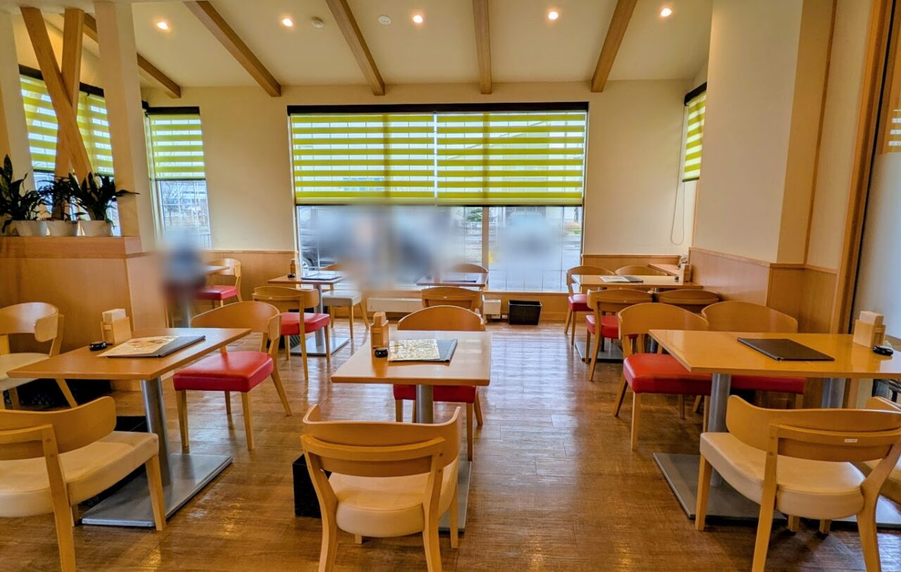 2026年1月にお店に伺いました。入って右手にあるカフェスペースは、木の温もりを感じられる落ち着いた雰囲気です。