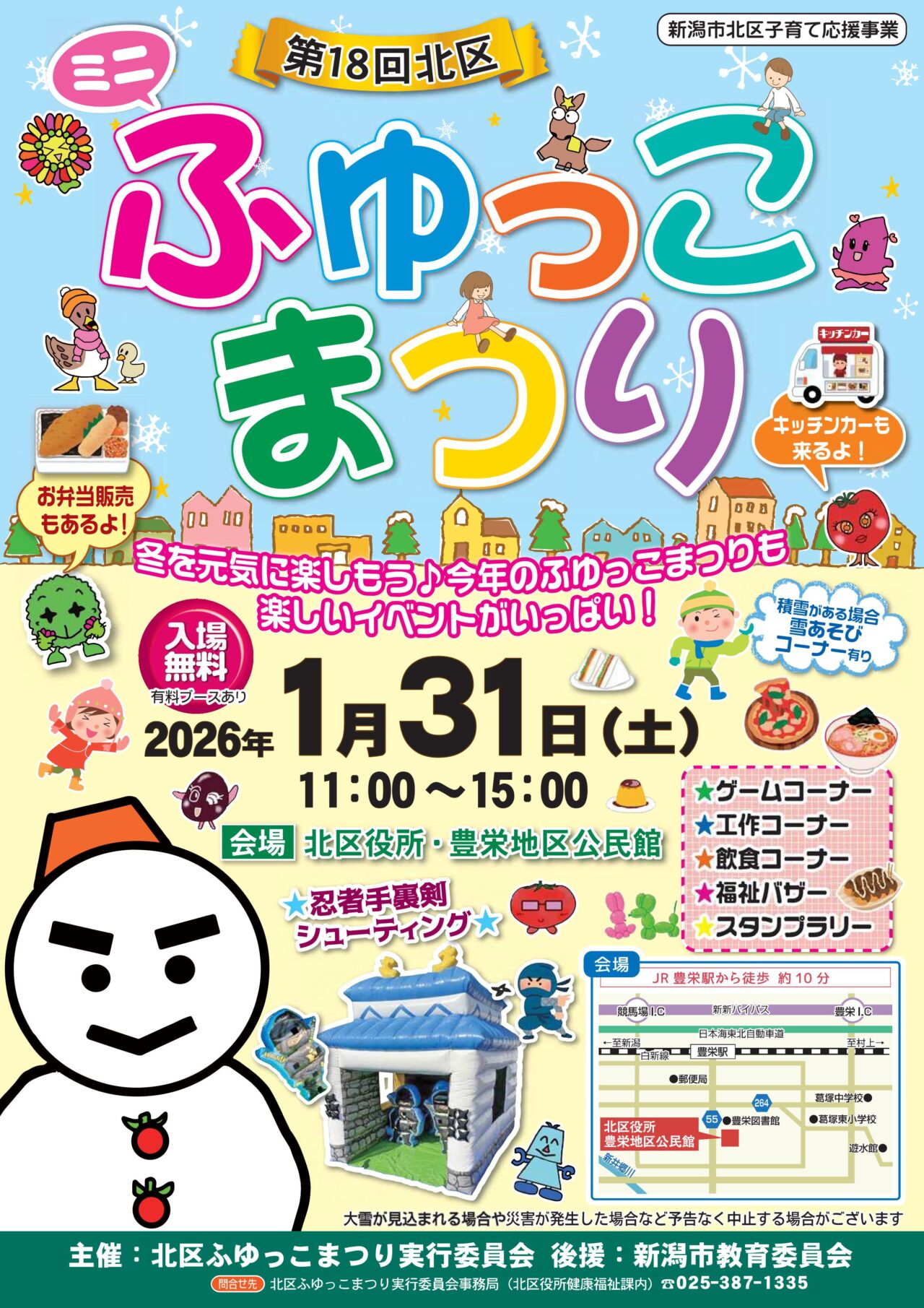 【新潟市北区】お楽しみが盛りだくさん! 1月31日(土)「第18回ふゆっこまつり」が開催されます。