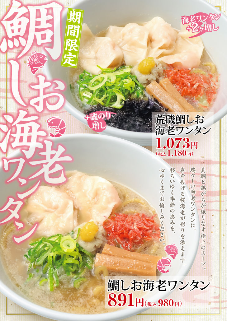2026年4月1日(水)より、「鯛しお海老ワンタン」を販売するそうです。
