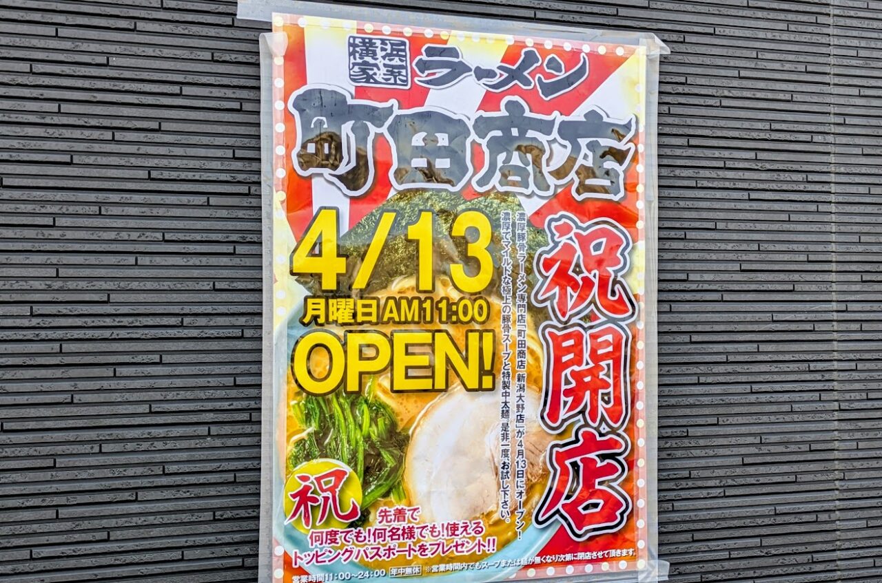 新潟市西区に横浜家系ラーメン 「町田商店 新潟大野店」がオープンしました。